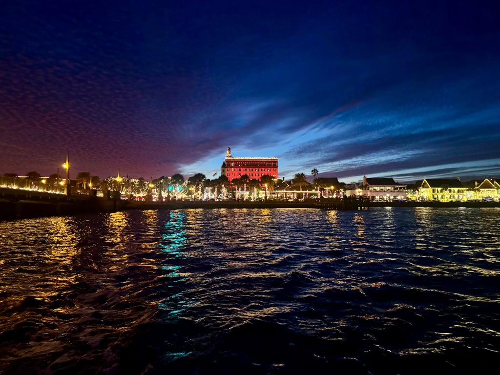 Enjoy a 90-minute private boat ride to St. Augustine's holiday lights with BYOB and your music for up to 11