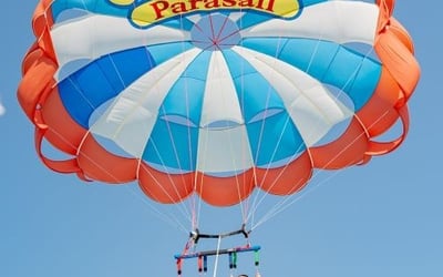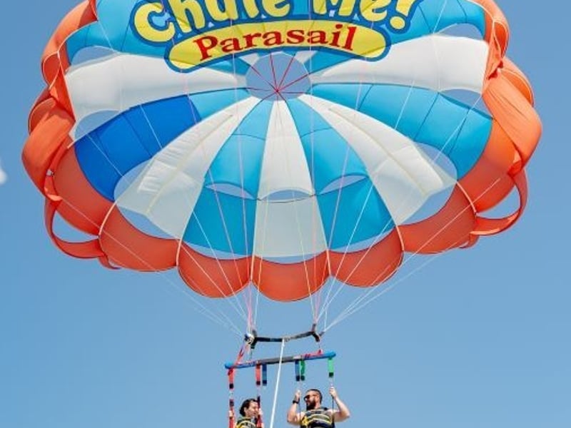 Children ages 6 or older can parasail, and children ages 3 or older may ride on the boat; no children under age 3 are permitted. Combined weight in the chute must be over 150 pounds and under 550 pounds. You must be able to speak or understand English for safety directions, and pregnant women are not allowed to parasail or observe on the boat.
