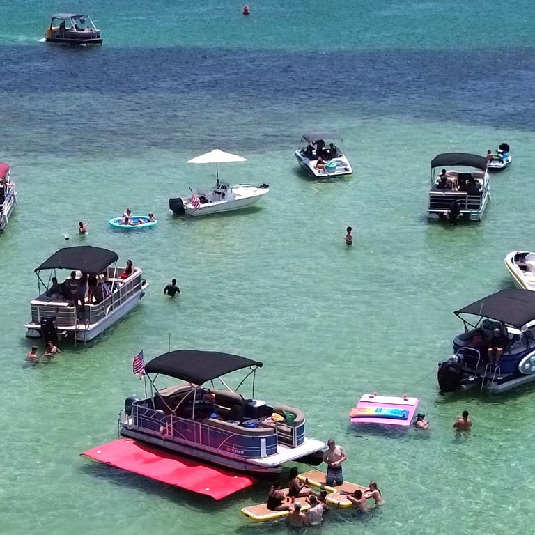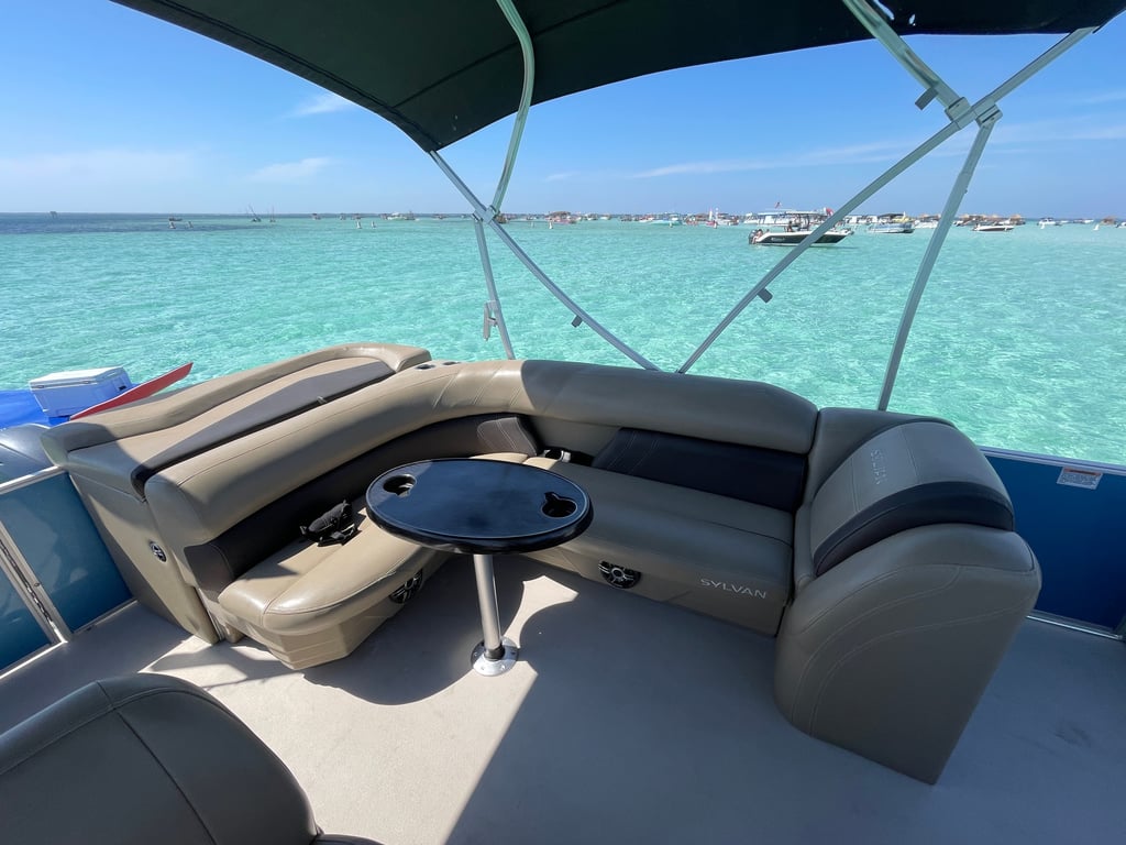 Set out on a private pontoon charter to explore Destin, Okaloosa Island, and Crab Island at your own pace. Enjoy comfy lounge floats, a floating lily pad, snorkel masks, and a cooler while you relax in the shallow waters.