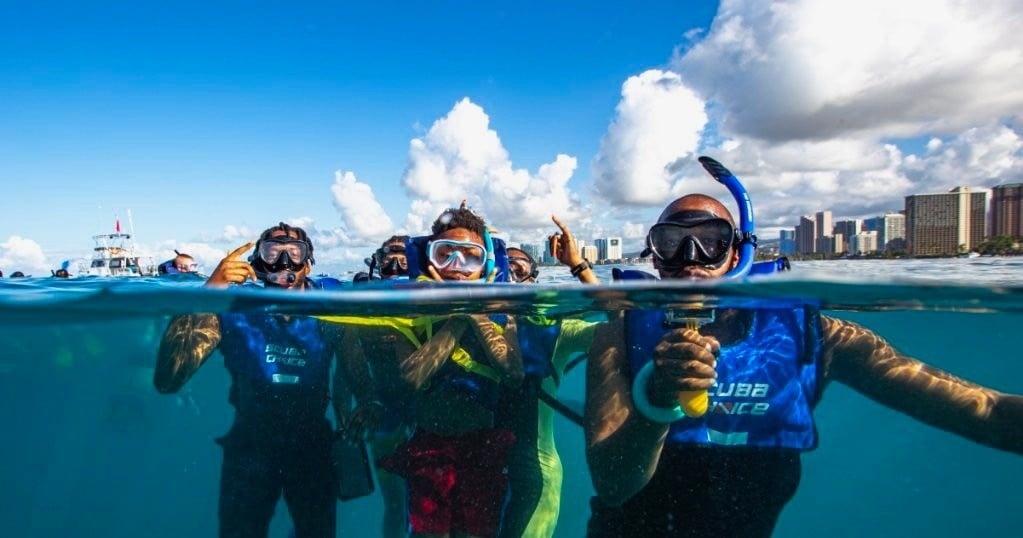 We LOVED our time with Honolulu Snorkel Company. Captain Carlos, Jake, Ace, & Avi were fun, knowledgeable, safe, and extremely patient- in particular. I was impressed watching them manage some more water-shy individuals and children. They kept calm and were encouraging with them. Jake even taught my husband how to dive down to the coral. We swam through endless fish and saw at least 5 sea turtles close-up. They were clear about rules and safety in regards to participants and to the wildlife. On the way back to dock, we spotted a pod of dolphins and Carlos stopped the boat, giving us extra time to watch them. It was magical and I was so thankful for that!