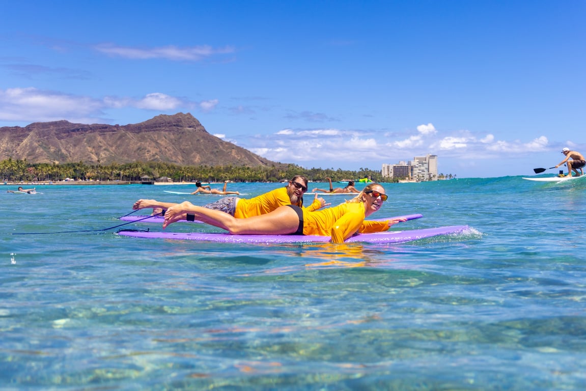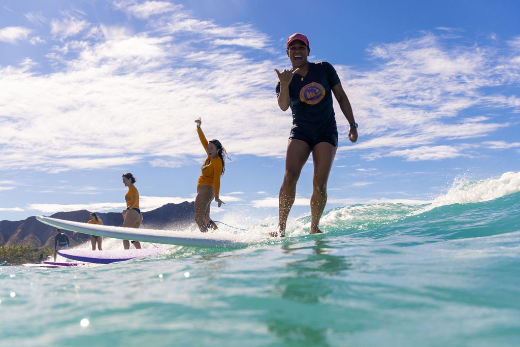 Learn to surf in Waikiki with a licensed Beachboy instructor in a private trio lesson