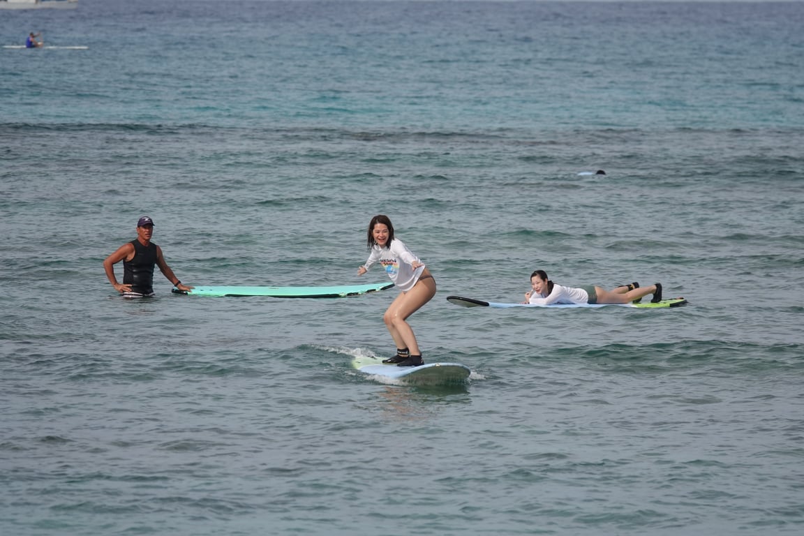 Learn to surf with a dedicated instructor during a private 2-hour lesson at Ala Moana in Honolulu. Reef shoes and a rash guard are included; bring sunscreen.