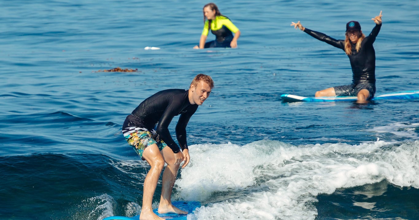 Learn to surf with a local pro in a 1.5-hour group session with gear included