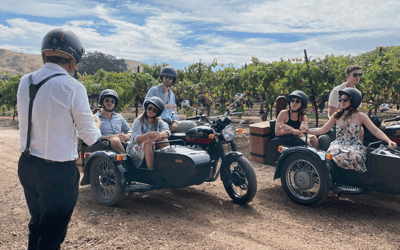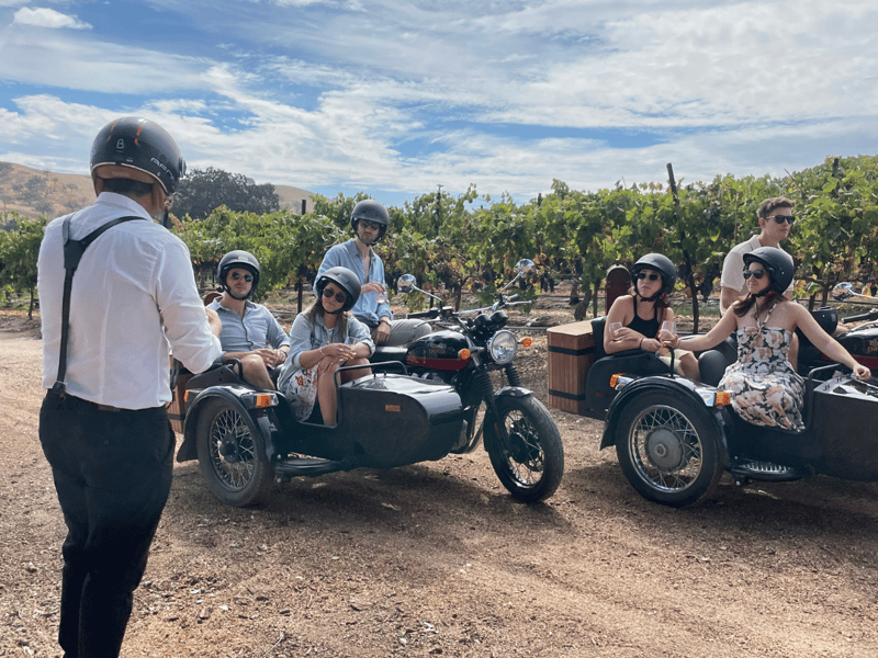 Ride in a sidecar through San Luis Obispo wine country on a 60 minute guided tour. Learn about vineyard operations and pause for scenic photos along the way.