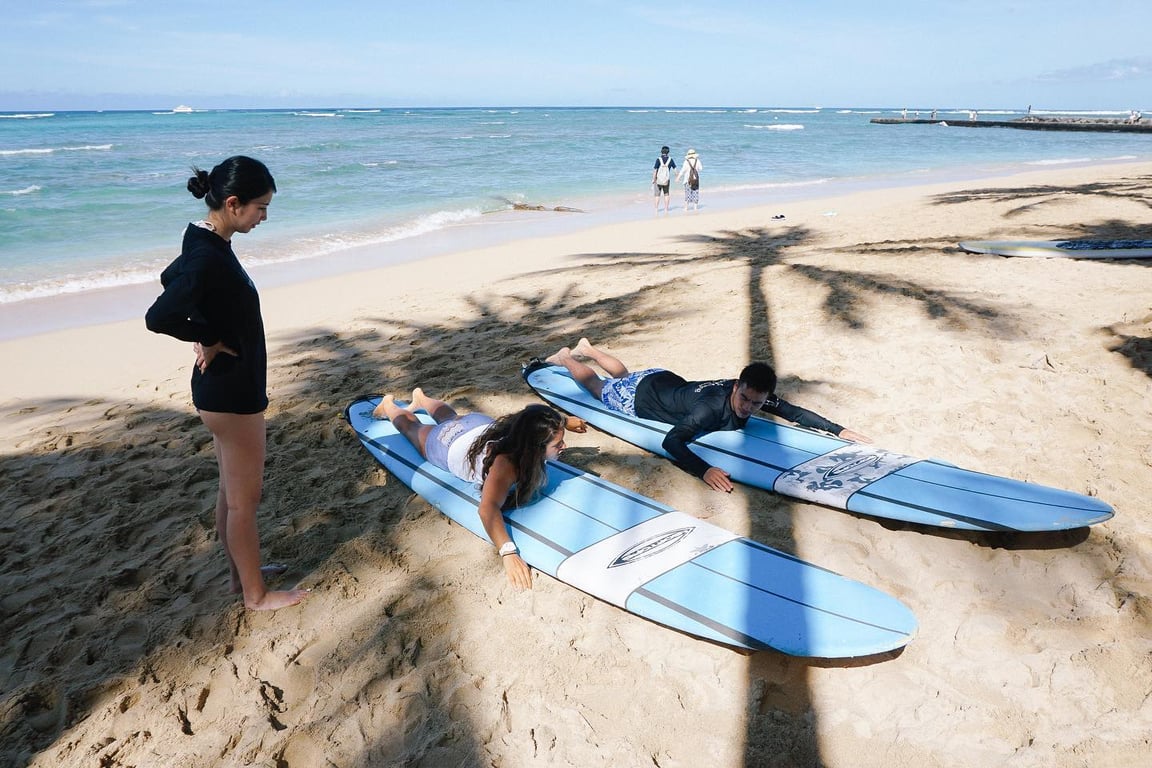 Gone Surfing's instructors consistently deliver exceptional lessons that turn nervous first-timers into confident wave-riders. Owen, Trevor, James, and Lindsay get frequent shoutouts for being patient, knowledgeable, and genuinely invested in getting students up on their boards. The team takes beginners to less crowded spots away from the main Waikiki chaos, which means more waves and better learning conditions. Several reviewers mention the thorough beach practice before heading out, and instructors stay attentive throughout the session, helping exhausted paddlers back to shore when needed. The photography add-on seems to be a popular choice that people appreciate having as proof of their accomplishments. Multiple reviewers emphasize that even complete beginners managed to catch waves and stand up during their first lesson, with one local resident overcoming a lifelong fear of surfing thanks to owner Jojo's supportive approach. The vibe is encouraging without being pushy, and instructors share the stoke with genuine enthusiasm when students succeed. It's worth noting the paddle out can be long, but reviewers consistently say the quality waves make it worthwhile.
