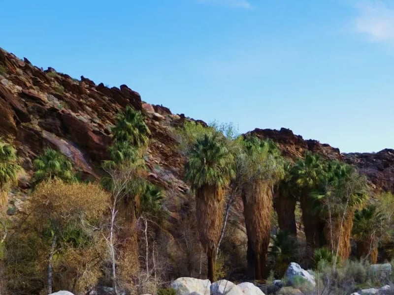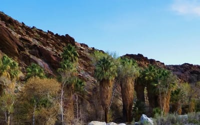 Andreas Canyon Trailhead sits just 15 minutes south of downtown Palm Springs, tucked within the Indian Canyons on the ancestral lands of the Agua Caliente Band of Cahuilla Indians. Despite its proximity to the city, the trail feels completely removed from the resort world, a lush oasis of towering palms, flowing water, and ancient stone where the Cahuilla people lived for thousands of years.