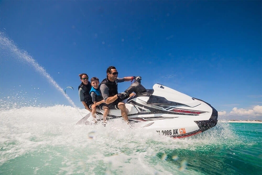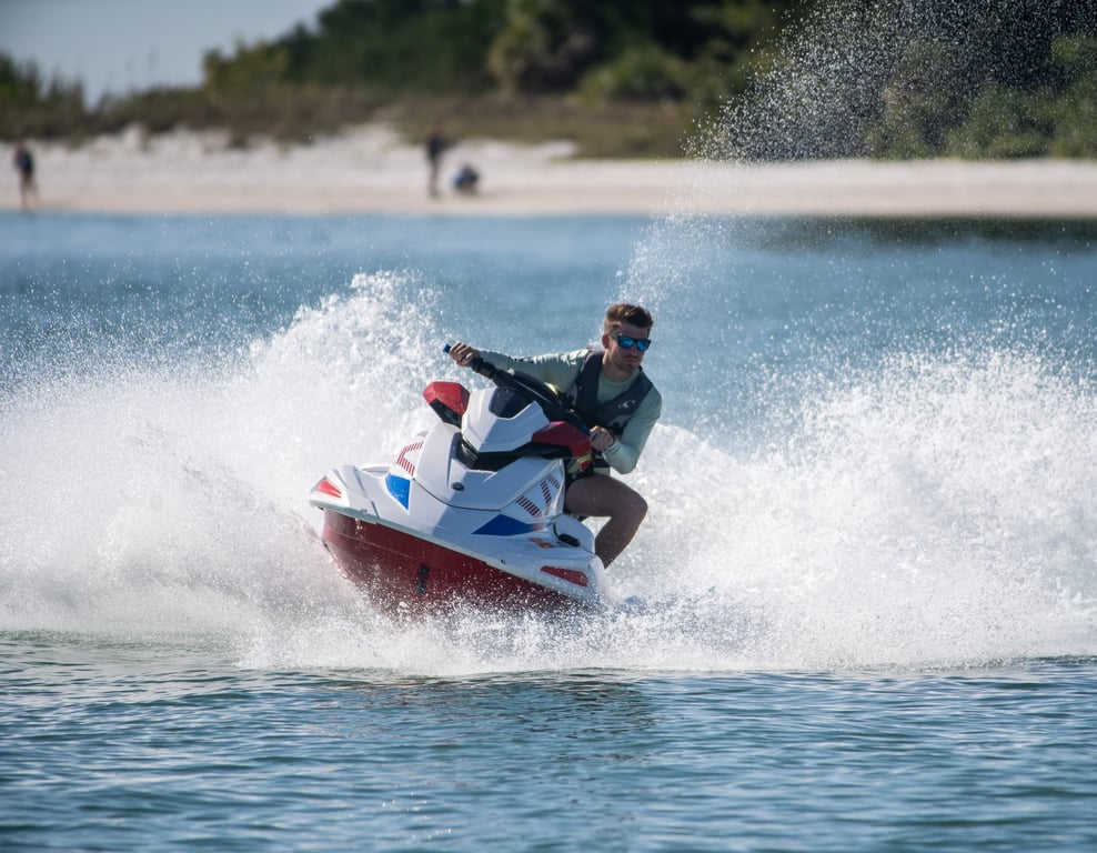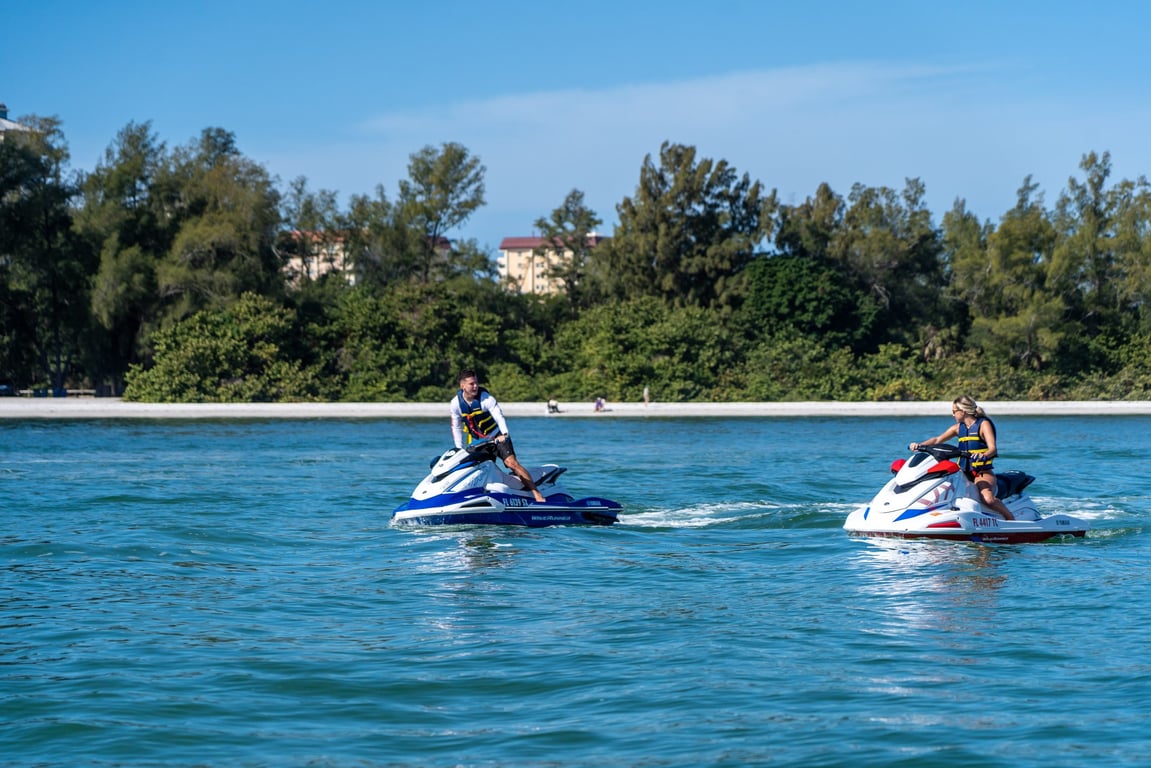 Feel the thrill of piloting a Yamaha VX110 Deluxe jet ski across the open waters of Siesta Key.