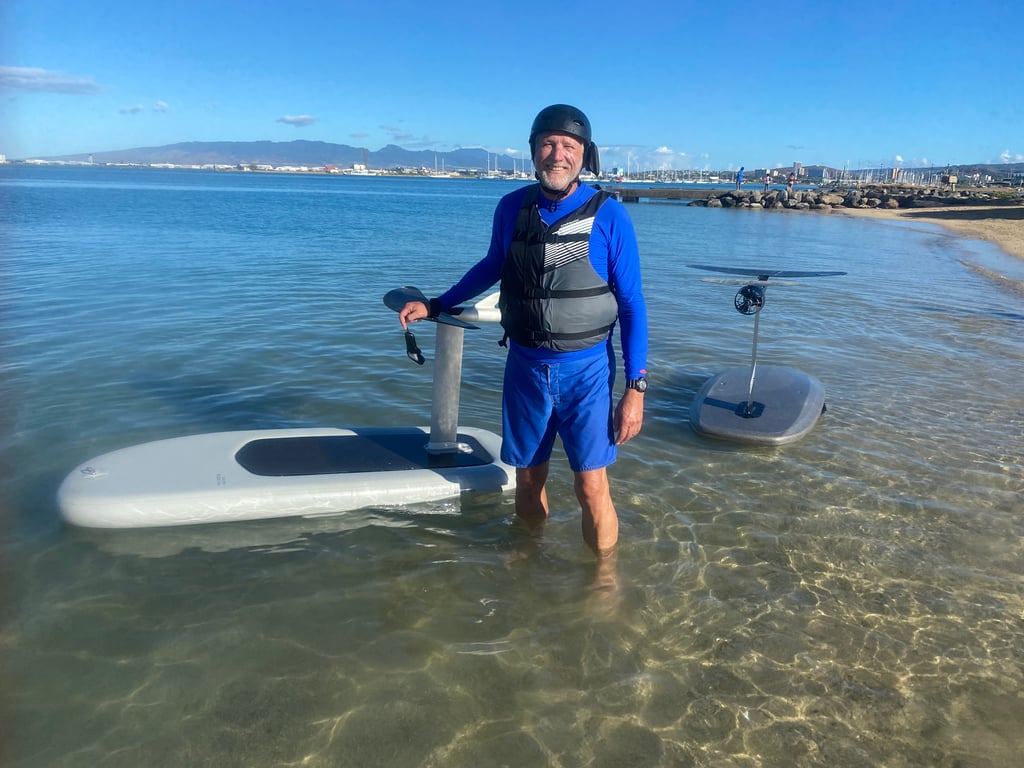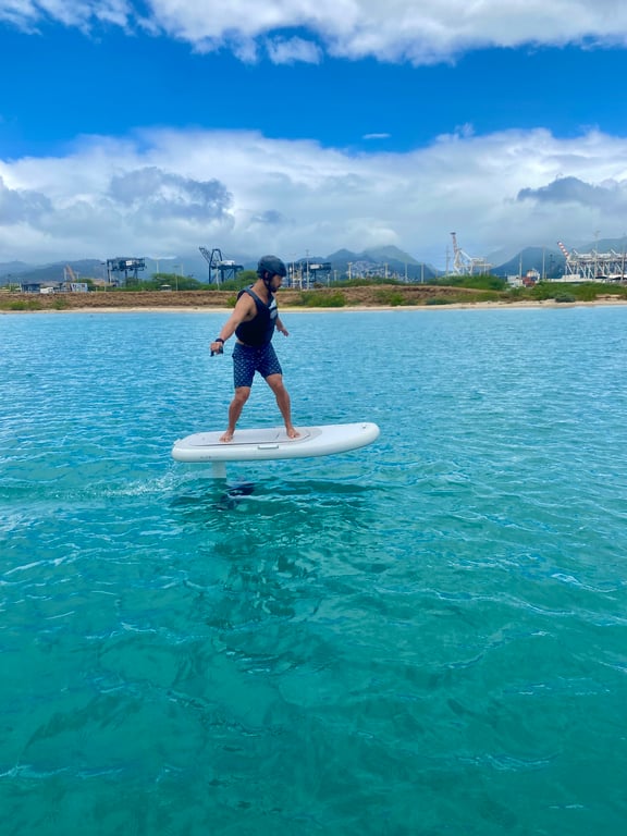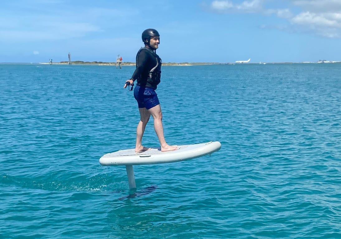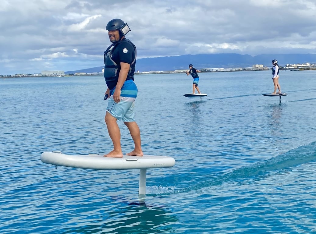 Learn to ride an eFoil with coaching, ground school, and three water runs