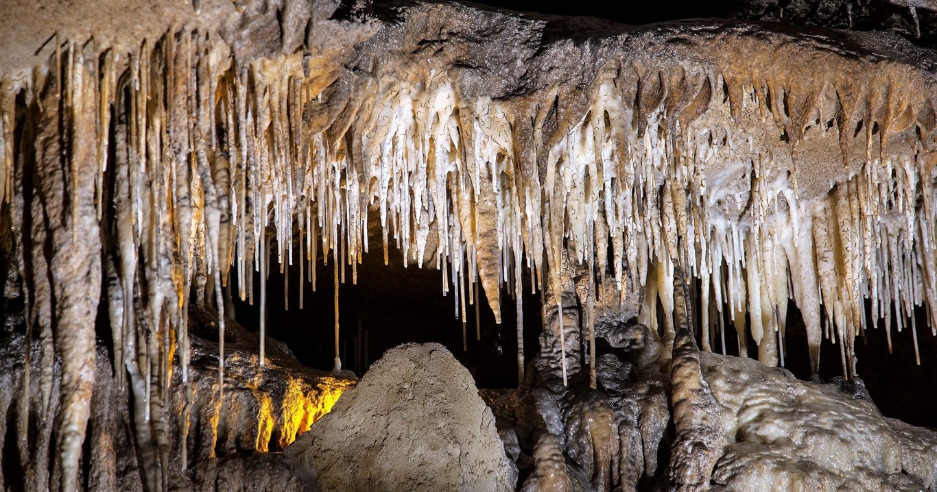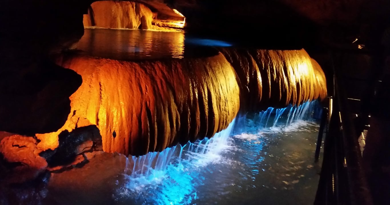 Explore a living cave with rushing streams, underground waterfalls, and striking formations. Walk about 1/3 mile on lighted, paved paths and steel bridges as you learn how the caverns formed.