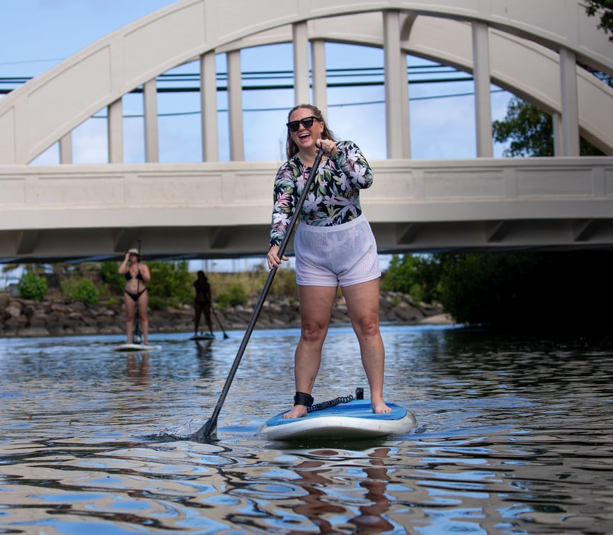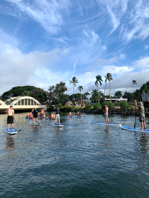 Rainbow Watersports has clearly figured out the formula for a memorable North Shore adventure. The operation runs paddle board and kayak tours along the calm Anahulu River near Rainbow Bridge in Haleiwa, making it an ideal spot for first-timers and families with kids. What keeps people raving is the friendly, low-key vibe from start to finish. Riley and Megan get mentioned by name for being genuinely helpful guides who take photos, give clear instructions, and make everyone feel comfortable on the water. The communication is spot-on too, with texts confirming details and quick responses to questions. They'll meet you right at the beach with equipment, and pickup is just as seamless. The real highlight seems to be spotting sea turtles paddling up the river, especially during the glow paddle sessions at sunset and into the evening. Multiple groups talk about seeing these turtles migrating between the ocean and river, which apparently happens daily as they head back to their sleeping spots. The calm, wave-free water makes this genuinely beginner-friendly, and families appreciate how safe and relaxed the whole experience feels. One traveler did lose a GoPro in the murky water, so secure your gear well. But overall, this consistently ranks as one of people's favorite activities during their Oahu trips, whether it's a casual two-hour rental or a guided tour. The fact that large groups of ten can be accommodated just as smoothly as couples speaks to how well-organized this outfit is.