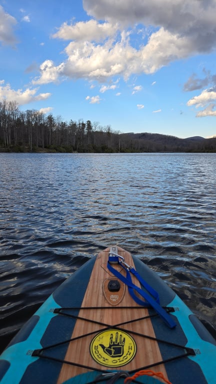 Flow through Vinyasa poses atop a paddleboard while soaking in tranquil lake views.