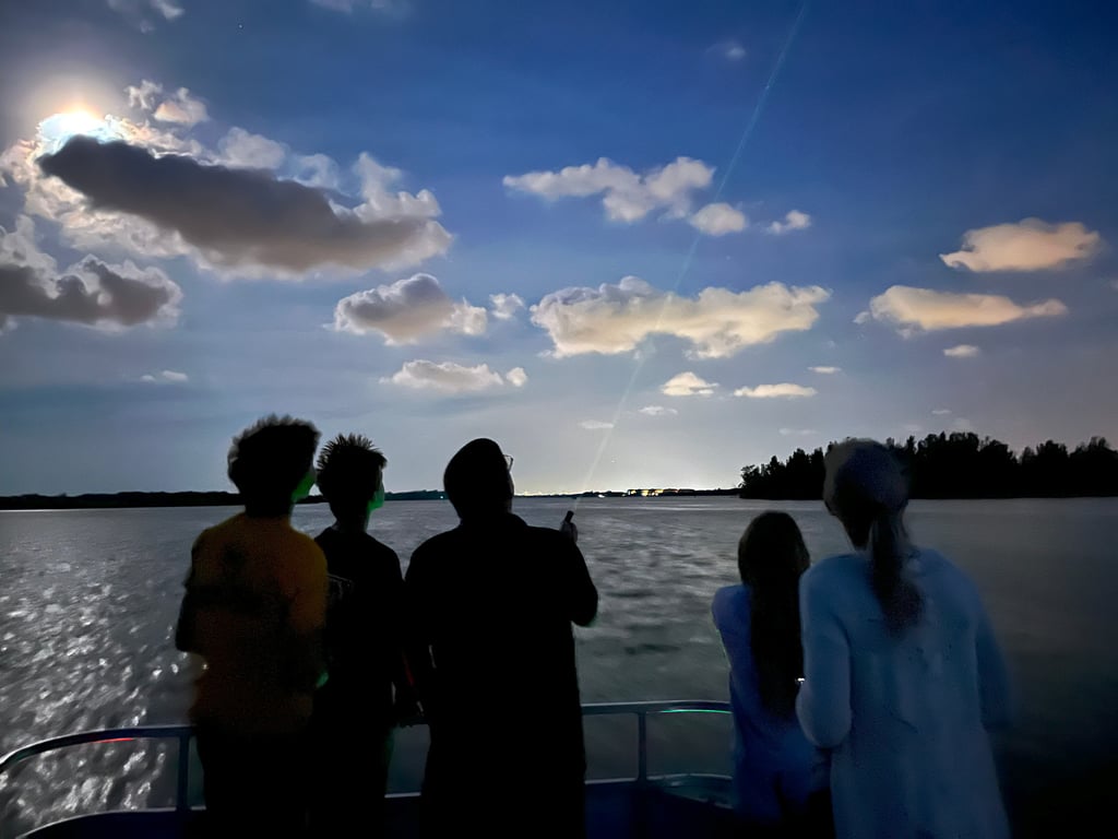 Embark on a two-hour evening cruise along Florida's Indian River Lagoon. Watch dolphins at sunset before an onboard astronomer guides your journey through the night sky.