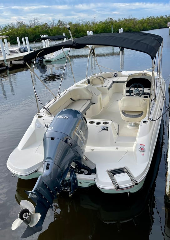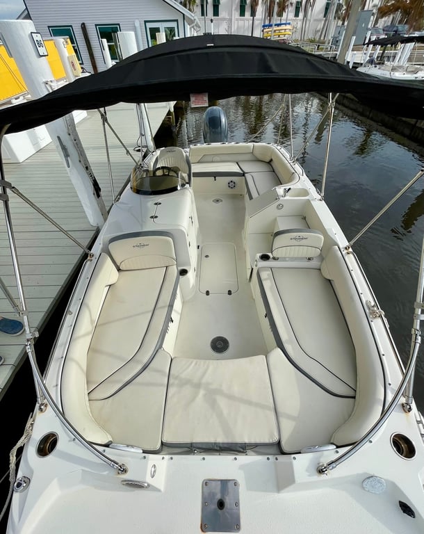 Enjoy a comfortable day on the water with a Stingray deck boat, perfect for groups seeking adventure and relaxation. Explore scenic islands and waterways at your own pace.