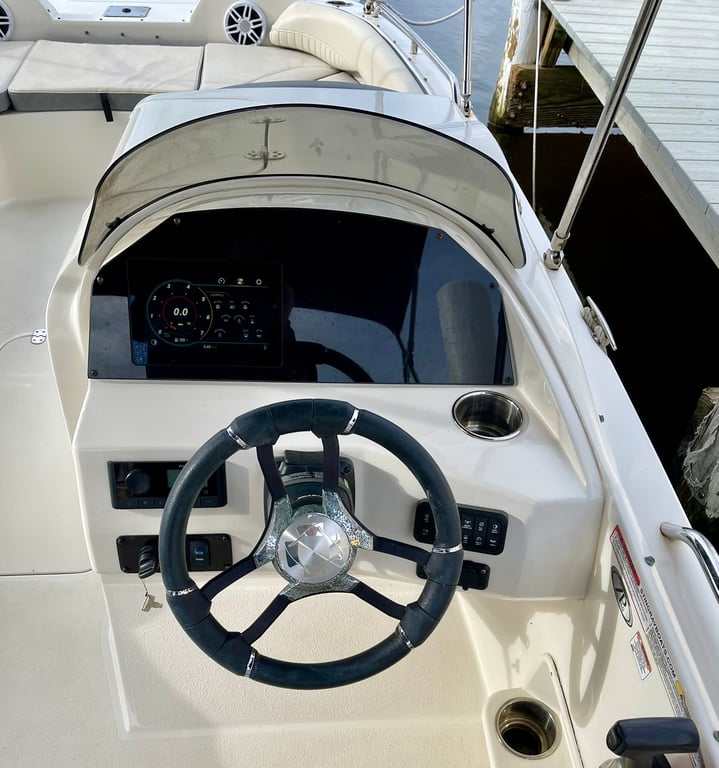 Cruise local waterways with friends or family on a spacious deck boat.