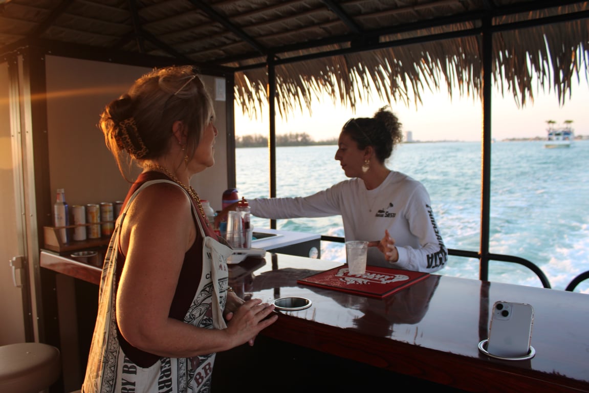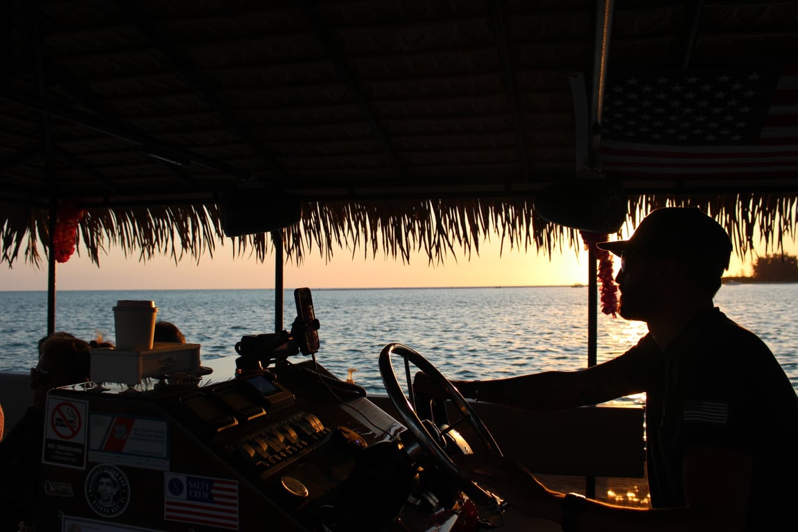 Watch the sun dip below the horizon as you glide along Siesta Key’s Intracoastal Waterway on a 2024 tiki boat. Enjoy shaded seating, an onboard restroom, and a lively sound system.