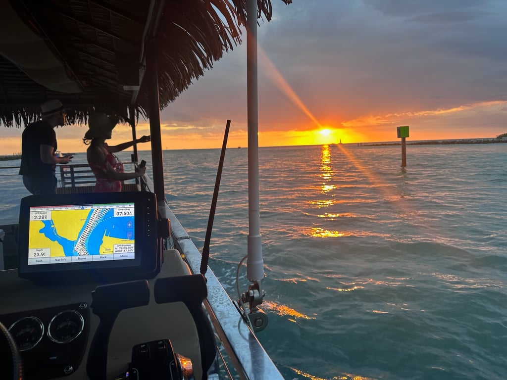 Sit back, relax, and enjoy a flexible private cruise on a BYOB tiki boat with a bathroom on board. Choose scenic homes, mangrove wildlife, or a beach stop—your tour, your boat.
