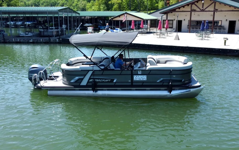Take the helm of a fully equipped tritoon and spend carefree hours cruising the water. Seat up to nine guests beneath the ample 9′ Bimini top while the 115 HP engine makes towing a tube effortless.