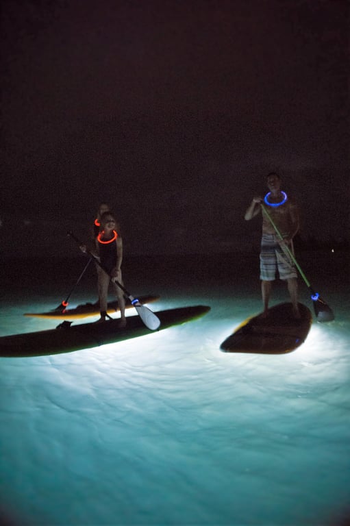 Paddle an LED-lit board at twilight and watch sea life illuminate beneath you
