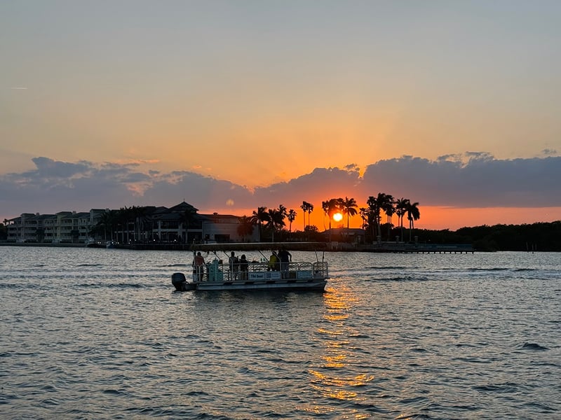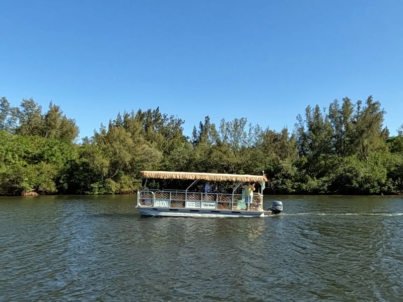 Sail the Indian River Lagoon on a private tiki boat, spotting dolphins and vibrant sunsets in just 90 minutes.