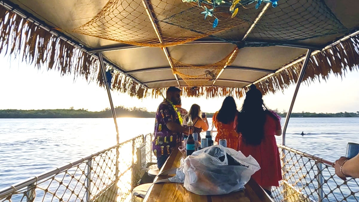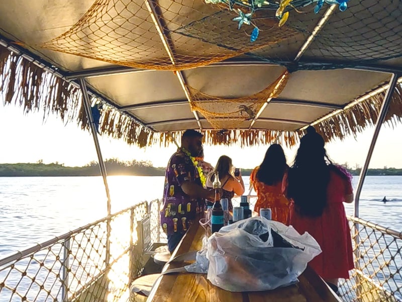 Board a tropical-themed tiki boat for a relaxed 90-minute cruise on the Indian River Lagoon. Enjoy sunset views, BYOB refreshments, and possible dolphin and manatee sightings.