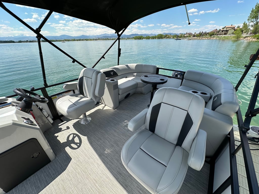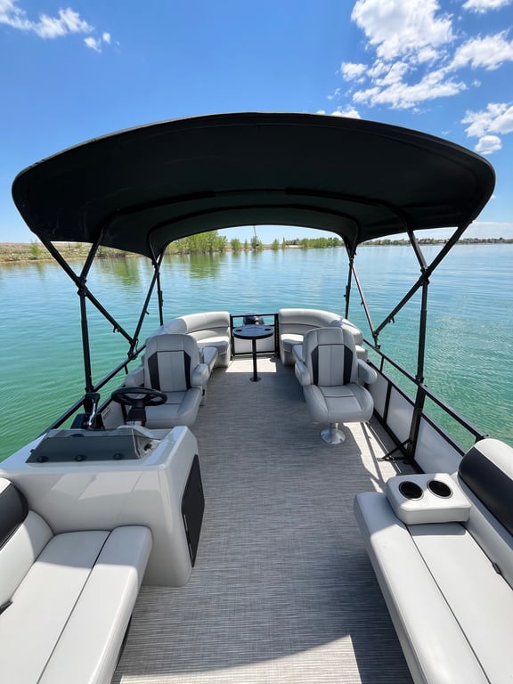Enjoy a spacious 10-person pontoon with bluetooth stereo for a fun day on Boyd Lake or your chosen waterway