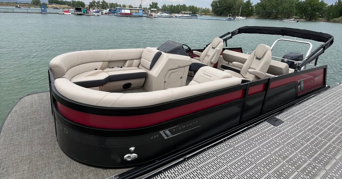 Set off on the Viaggio Diamante 23S, a luxury tritoon designed for water sports, fishing, and easy cruising. Choose delivery to Boyd Lake or pick it up and tow it to your favorite destination.