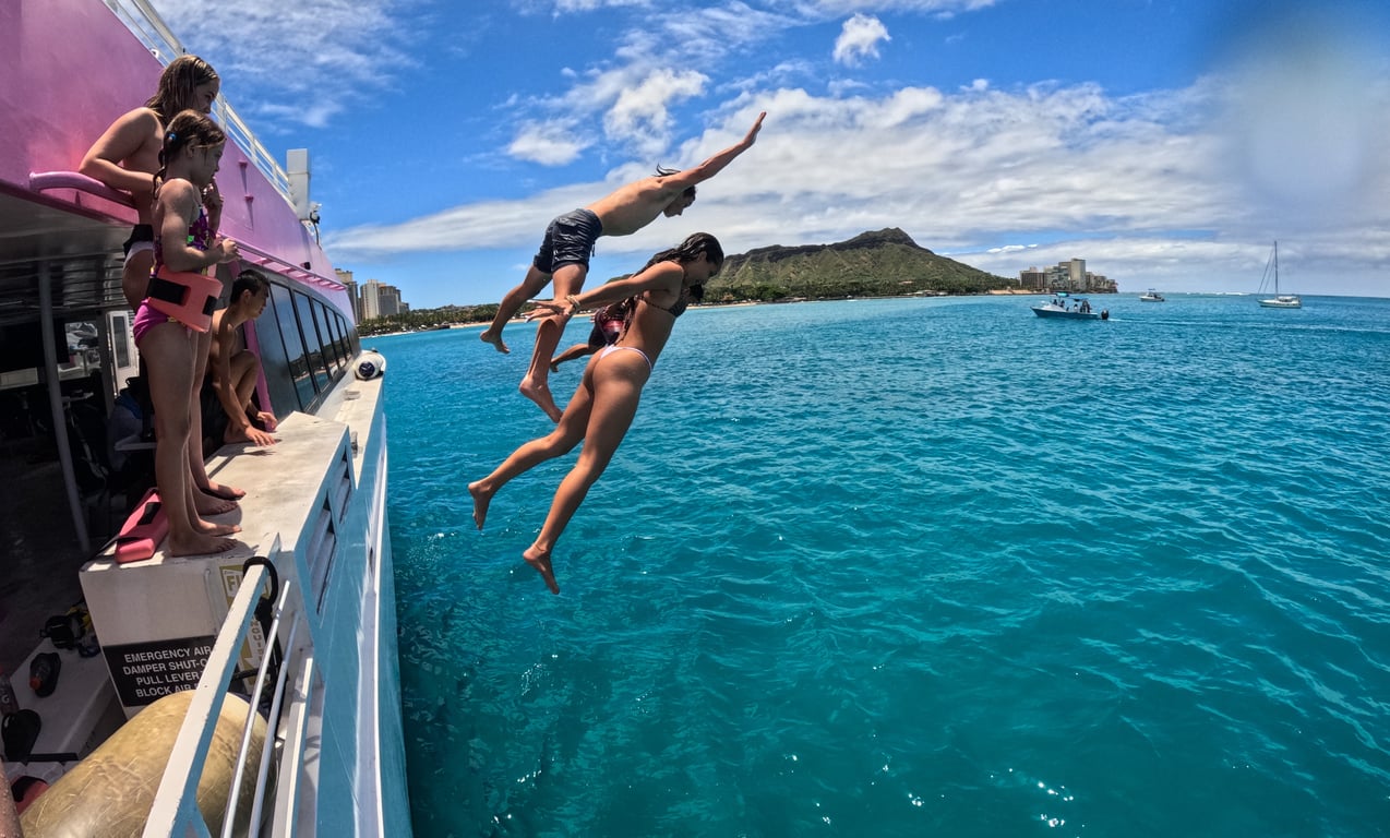 The crew here absolutely makes the experience. Guests consistently rave about captains like Jamie, Brendon, and Alexio, along with crew members who genuinely seem to love their jobs. They're described as fun, interactive, and constantly checking in to take photos (good ones, apparently). There's a relaxed, local vibe rather than a touristy feel, with music, jokes, and a bar on board that keeps the atmosphere light and enjoyable. The tours typically include turtle snorkeling with quality equipment, swimming off the boat, and sunset cruising with views of Diamond Head and Waikiki. Families particularly appreciate how the activities work for all ages—kids love jumping off the boat while adults enjoy the drinks and scenic commentary. The boats are well-maintained and clean, with safety clearly prioritized. One traveler did mention boarding can be tricky for those with mobility issues depending on water levels, though the crew helps out. Another arrived four minutes before departure and the boat had already left, so plan to get there early.